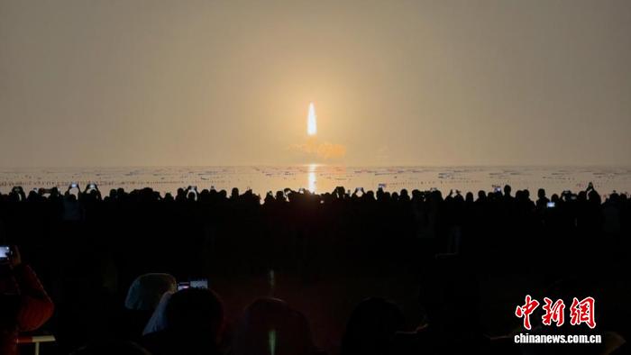 3月22日深宵,山东海阳连理岛,乘客远隔绝旁观海上水箭收射。中新社记者 王娇妮 摄 秋夜的海滨凉意犹存,上万实期待者的热中涓滴没有加。儿童们裹着结实的棉被或者羽绒服,依靠正在家人身边,一心天看背遥圆的海里。 收射前数小时,不雅礼区已化身“航上帝题乐土”。舞台上,乐队奏响悲歌,呆板人随乐起舞;互动区内乱,身着“航天服”的任务职员穿越指导,搭客们积极到场学问问问、兴趣挑拨;文创铺台前,“捷龙3号”共款水箭模子、航上帝题冰箱揭等备蒙喜爱。